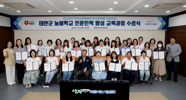 [Ytv영상스토리] 태안군이 지난 8일 군청 중회의실에서 가세로 군수와 교육생 등 30여명이 참석한 가운데 ‘늘봄학교 전문인력 양성과정 수료식’을 갖고 총 29명의 수료생을 배출했다고 밝혔다.