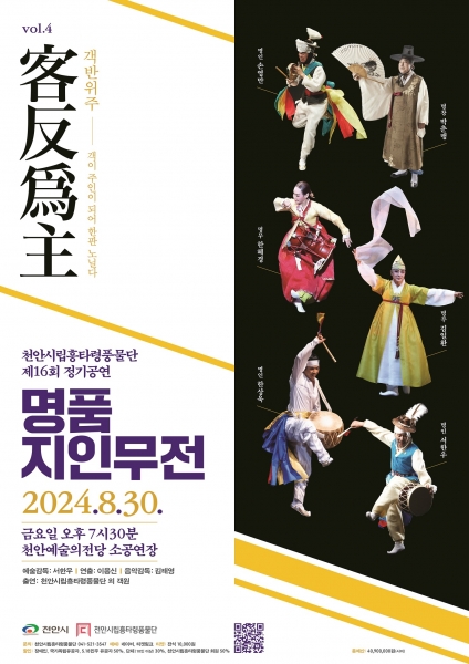 [Ytv영상스토리] 천안시는 오는 30일 천안시립흥타령풍물단이 천안예술의전당 소공연장에서 제16회 정기공연 ‘객반위주4-명품지인무전’을 개최한다고 밝혔다.