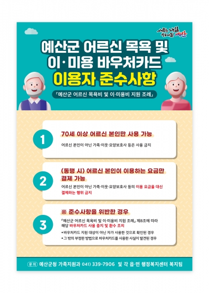 예산군, “어르신 목욕비 및 이·미용비 바우처카드 올바르게 사용해요”