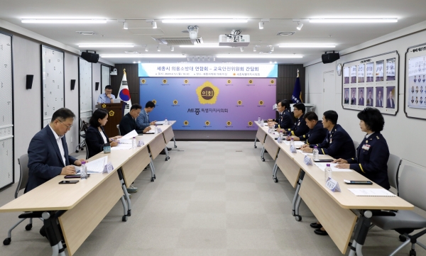 이번 자리는 교육안전위원회 위원 4명과 박덕수 세종시의용소방대연합회장을 비롯한 연합회 관계자 7명이 참석한 가운데 이루어졌다.