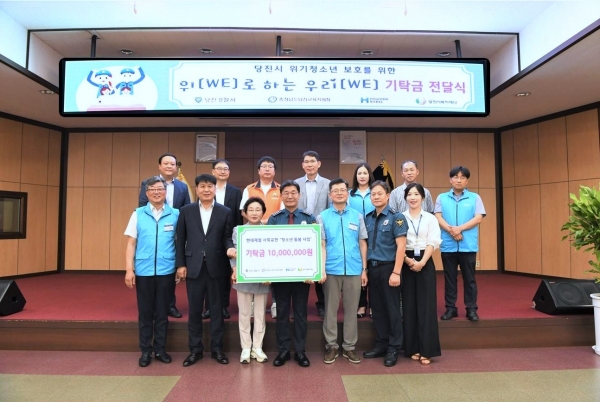 이날 행사에는 당진경찰서 김영대 서장, 당진교육지원청 송하종 교육장, 당진시복지재단 양기림 이사장, 현대제철 관계자 최해진 상무가 참석했으며 기탁금은 경제적 기반이 부족한 위기청소년을 위한 지원 및 활동형 프로그램 운영에 사용할 예정이다.
