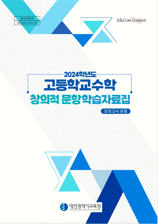 수학 창의적 문항 학습자료집은 대전지역 24명의 중·고등학교 수학 교사들이 연구를 통해 문항을 직접 개발했으며 학생들에게 올바른 수학 개념을 정립하고 수학적 문제해결력을 향상시킴으로써 2025학년도 대학수학능력시험을 대비하고 교실 수업에 도움을 주기 위해 제작했다.