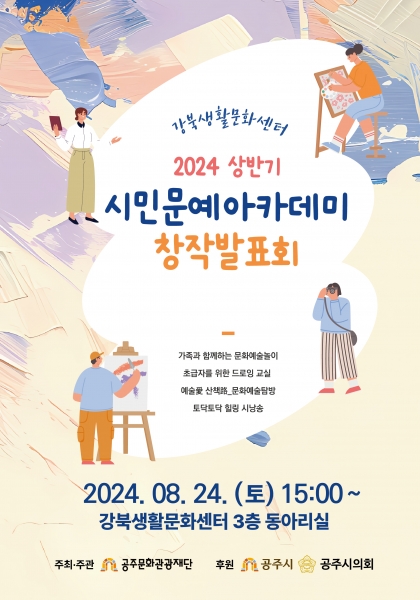 8월 24일 토요일 강북생활문화센터 3층 동아리실에서 오후 3시부터 진행되며 수강생뿐만 아니라 문화예술에 관심있는 공주시민 누구나 참여할 수 있다.