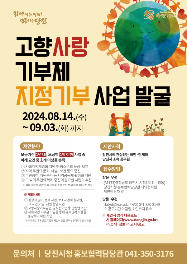 당진시, 2024년 당진시 고향사랑기부제 지정 기부 사업 발굴