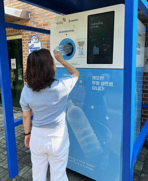 시민들은 ‘수퍼빈’앱을 이용해 포인트 현금 환급을 비롯해 투명페트병 무인 회수기 위치, 기기 사용 가능 여부, 이용자의 적립금액 등을 손쉽게 확인할 수 있다.