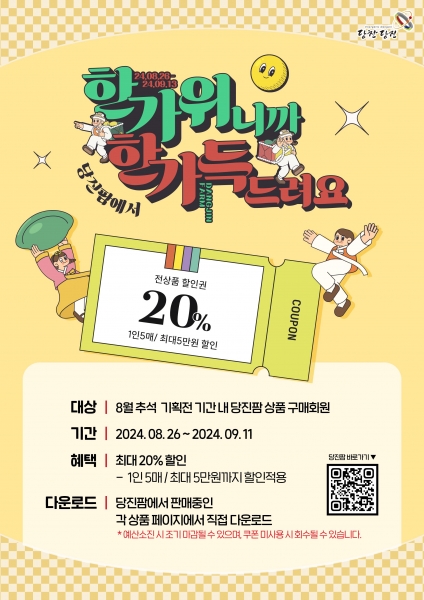 이번 특판행사에서는 당진팜에서 판매하는 모든 농특산물에 사용할 수 있는 20% 할인 쿠폰을 1인당 최대 5매까지 제공한다.