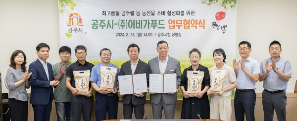 이에 따라 시는 공주쌀 등 안전하고 우수한 품질의 농산물을 공급하고 ㈜이비가푸드는 공주의 농산물을 적극 사용해 지역경제 활성화에 기여하기로 했다.