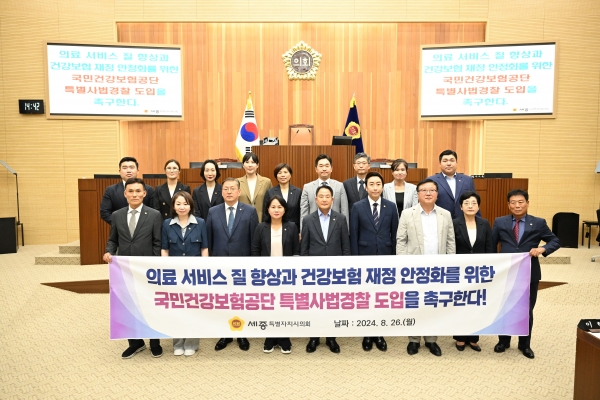 한편 세종시의회는 ‘국민건강보험공단 특별사법경찰도입 촉구 결의안’을 국회의장과 국무총리, 보건복지부, 법무부, 국민건강보험공단 등에 이송할 예정이다.