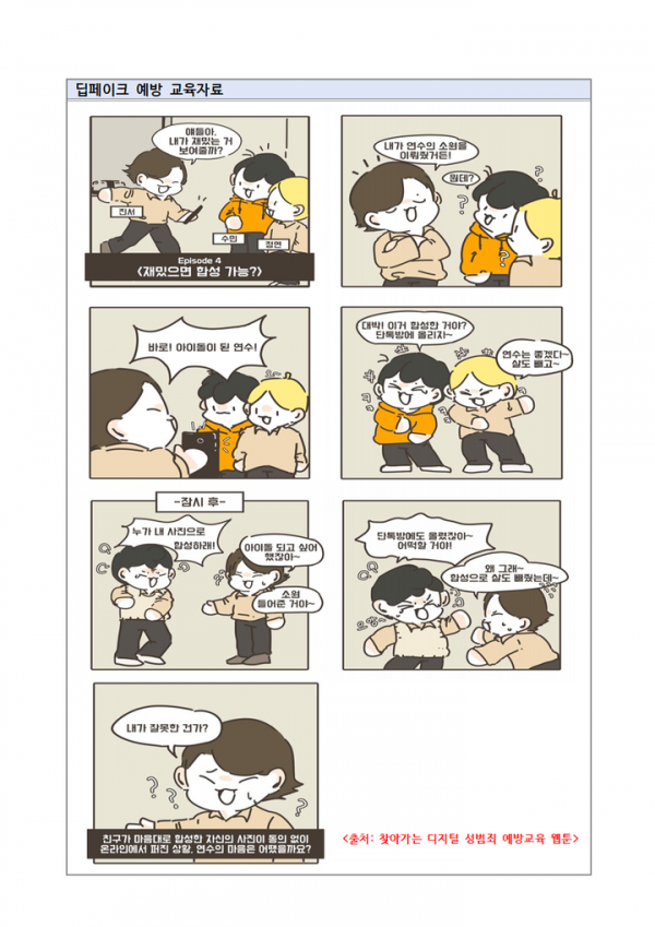 최근 사회관계망서비스에서 전국 중·고교생, 대학생 딥페이크 피해자 명단이 게재되는 등 학부모의 불안이 증폭되고 있는 상황으로 디지털 성범죄 예방교육을 위해 ‘딥페이크 등 성범죄 특별교육주간’을 2024. 8. 26.부터 9. 6.까지 운영할 계획이다.