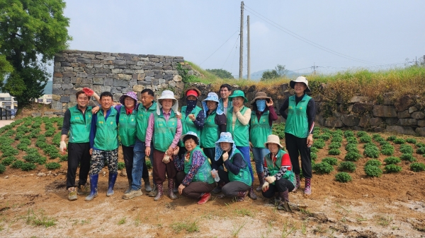 더운 날씨에도 불구하고 아름다운 면천읍성 조성을 위해 새마을협의회 회원들은 이른 새벽 시간부터 나와 면천읍성 주변 화단에 국화, 목수국 등 초화류 약 1,200여 본을 심었다.