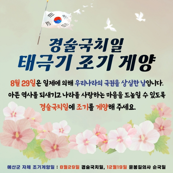 이는 나라 잃은 슬픈 날을 기억하고 아픈 역사를 잊지 않겠다는 의지를 다지고자 군 소속 및 산하기관에 조기를 게양하도록 하는 것이다.