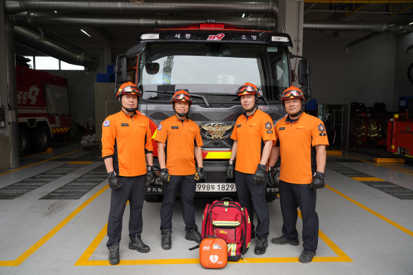 현장에 도착한 대원들은 심정지 상태의 남성에게 가슴압박과 함께 심장충격기를 사용해 A씨의 맥박과 호흡을 되살렸다.