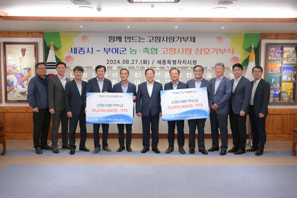 부여군 농축협에서는 세종시에 2,663만원, 세종시 농협에서는 부여군에 2,080만원을 각각 기부했다.