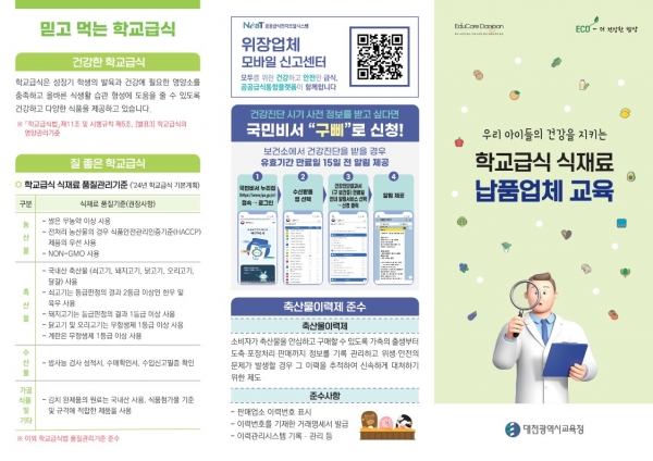 대전교육청, 학교급식 식재료 납품업체 교육 리플릿 배부
