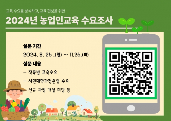수요조사를 통해 농업인 교육 개선, 희망 교과목 편성, 과정 신설 등 다양한 의견을 제시할 수 있다.