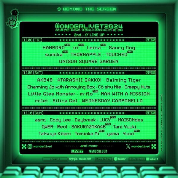 개최 발표부터 J팝 리스너들의 열띤 관심을 모은 ‘원더리벳 2024’는 블라인드 티켓과 3일권 티켓이 빠르게 매진을 기록하며 압도적인 티켓 파워를 입증했다.