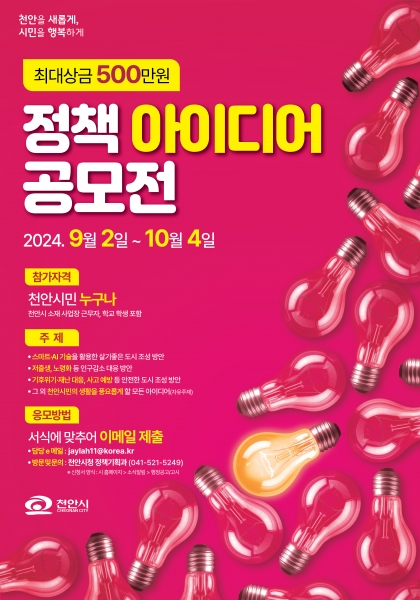 천안시, 2024 하반기 정책 아이디어 공모전 시행