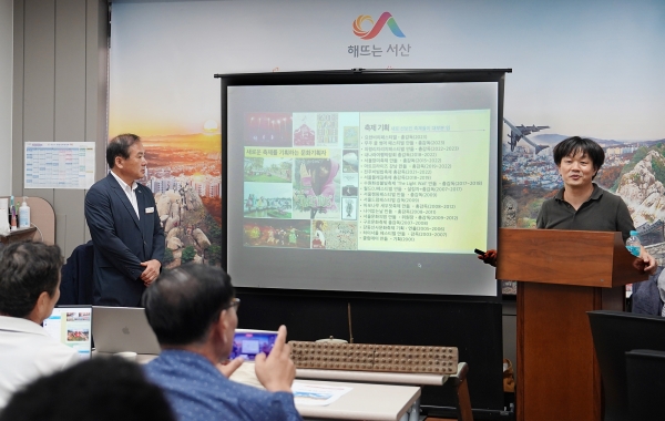 서산문화재단 임진번 대표이사, 류재현 축제 총감독은 2일 시청 브리핑룸에서 기자회견을 통해 서산시가 주최하고 서산문화재단이 주관하는 제21회 서산해미읍성축제의 청사진을 밝혔다.
