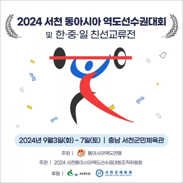 이번 대회는 동아시아역도연맹, 2024 서천동아시아역도선수권대회 조직위원회 등이 주최·주관하고 서천군과 서천군체육회 후원으로 개최된다.