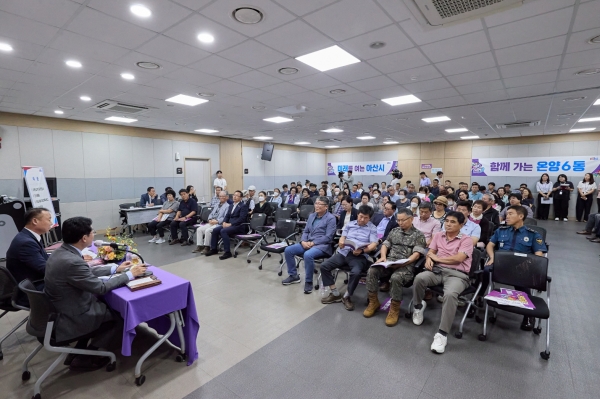 특히 박 시장은 온양6동의 낙후된 환경을 토로하는 한 주민의 발언에 “온양6동은 도농복합 지역이다 보니 도심지에 비해 상대적으로 발전이 더딘 부분이 있다.
