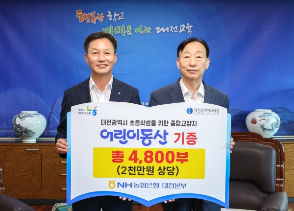[Ytv영상스토리] 대전시교육청은 9월 3일 NH농협은행 대전본부로부터 2천만원 상당의 어린이 종합 교양지 ‘어린이동산’ 4,800부를 기탁받았다고 밝혔다.