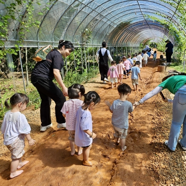 비닐하우스 내에 조성된 황톳길은 우천 시에도 안전하게 이용 가능하며 장미, 복수박, 머루, 여주 등 다양한 줄기식물이 자연스러운 그늘을 만들어 한여름에도 시원한 환경을 제공한다.