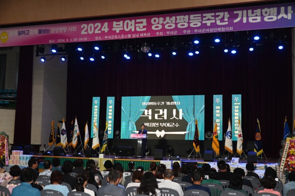 [Ytv영상스토리] 부여군과 부여군여성단체협의회는 지난 3일 부여군유스호스텔 실내체육관에서 박정현 부여군수와 여성단체협의회 회원, 역대 고문, 기관 단체장 등이 참여한 가운데 2024년 부여군 양성평등주간 기념행사를 개최했다.