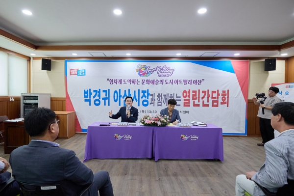 박경귀 시장은 간담회에 앞서 “아산시는 민선 8기에 도시브랜드를 ‘아트밸리 아산’ 으로 바꾸고 전국에서 많은 분들이 찾는 문화예술도시로 변모했다”며 “그 가운데에는 외암민속마을과 봉곡사, 궁평저수지와 강당골계곡 등 아산의 대표 생태관광자원을 보유한 송악면이 있다”고 밝혔다.