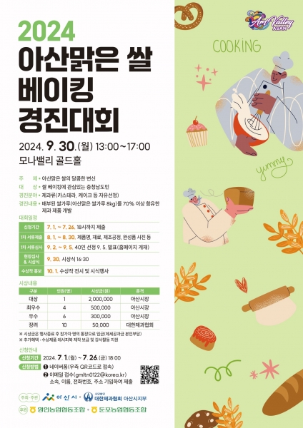 [Ytv영상스토리] 아산시가 오는 30일 ‘모나밸리 골드홀’에서 개최하는 ‘2024년 아산맑은쌀 베이킹 경진대회’의 참가자 94명 중 2차 본선 진출자 40명을 선정했다.
