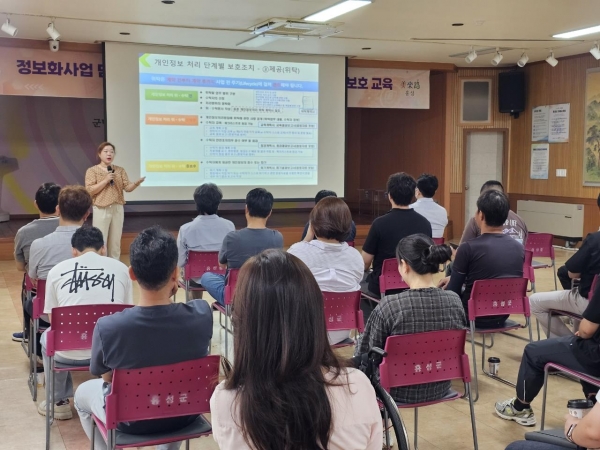 46개 정보화사업 담당자 36명, 참여인력 32명을 대상으로 △주요 정보유출 사고사례와 대응방법 △용역사업 수행 시 보안관리 절차 △개인정보보호 처리단계별 기본 수칙 △정보보안 관리현황 △개정된 개인정보보호법 이해 등에 대한 교육을 실시했다.