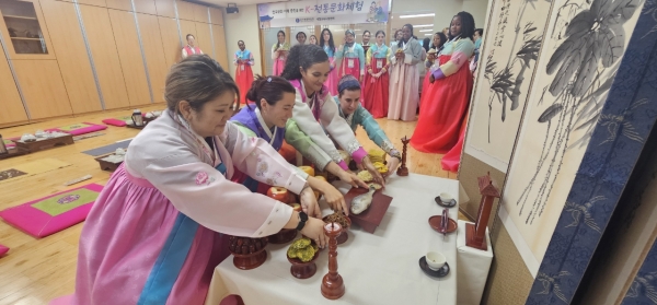 원어민 교사들은 한복체험, 한국의 인사법과 절하는 방법, 차례상 차리기 실습, 다도 체험, 삼색 송편 만들기 등 한국의 대표적인 명절인 추석을 맞아 다양한 한국 전통문화를 직접 체험할 수 있는 시간을 가졌다.