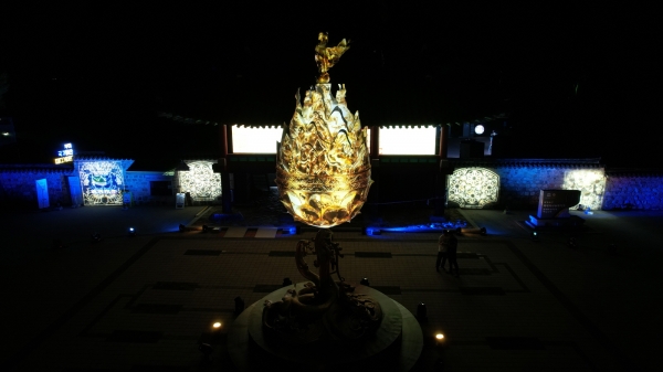 하늘 높이 솟은 빛의 기둥은 마치 의장대가 늘어서듯 성왕의 사비천도 축하연에 온 관람객들을 열렬히 맞이했다.