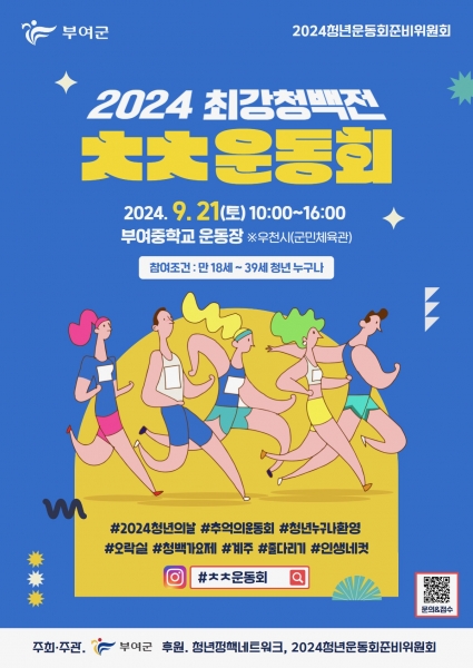 기타 문의는 카카오톡 플러스친구 ‘2024 부여 청년운동회’를 통해서 할 수 있다.