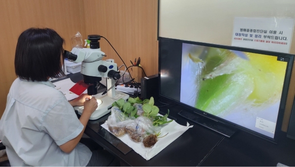 시는 현미경 검경 과정에서 딸기 묘에 발생할 수 있는 탄저병, 시들음병, 선충, 작은뿌리파리 등 병해충에 대한 종합 검경과 정식 초기 집중 관리 사항에 대한 상담도 제공하고 있다.