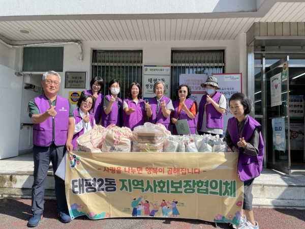 한편 태평2동 지역사회보장협의체는 매달 홀몸 어르신, 중장년 등 취약 가구 26세대를 방문해 부식꾸러미를 전달하며 안부를 살피고 있으며 복지사각지대 발굴 및 자원 연계에도 적극 노력하고 있다.
