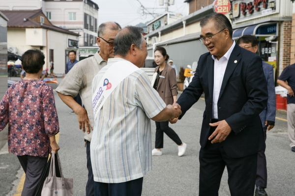 김기웅 서천군수, 추석 맞이 전통시장 소통 행보