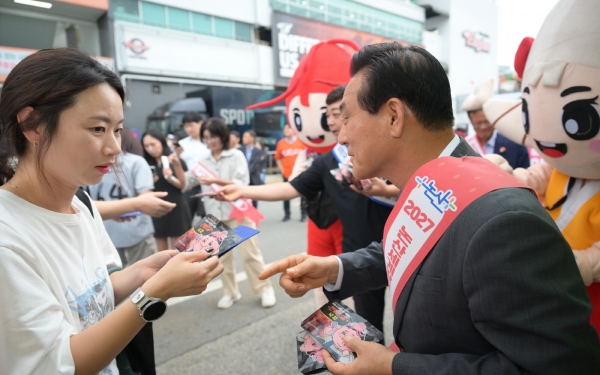한편 이 날 대전 한화생명이글스파크 경기장 밖에서는 ‘2027 논산세계딸기산업엑스포’ 와 논산시농산물브랜드 ‘육군병장’, 그리고 오는 10월 17일부터 20일까지 개최되는 ‘강경젓갈축제’홍보부스가 마련됐다.