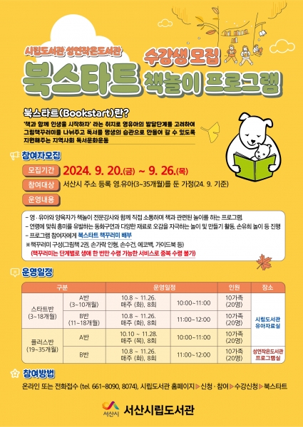서산시, 북스타트 책 놀이 프로그램 수강생 모집