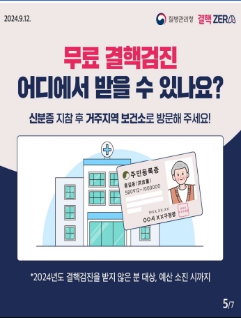 시 관계자는 특히 “결핵은 마스크 착용 및 개인 방역 등 조기 발견과 예방이 매우 중요한 질병인 만큼, 지역사회 어르신들이 무료 검진에 적극 참여하시어 건강한 삶을 유지할 수 있도록 홍보하겠다”고 말했다.