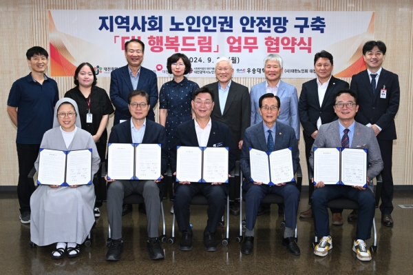 [Ytv영상스토리] 대전 중구는 지난 23일 노인인권을 보호하고 노인학대를 예방하기 위해 지역사회 5개 유관 기관과 노인 인권안전망 구축 업무협약을 체결했다고 밝혔다.
