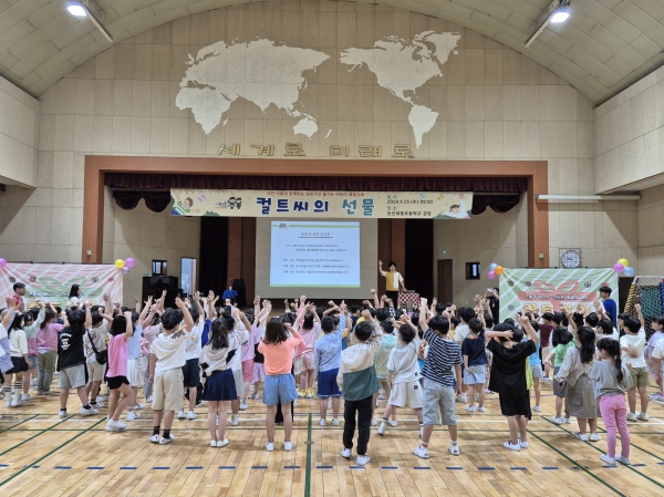지난 달 광석초등학교에 이어 두 번째로 실시하는 이번 교육은 ‘컬트씨의 선물’ 이라는 주제로 △매직쇼 △어린이 예절교육 △퀴즈쇼 △예절 강화 선언문 △마술과 함께하는 예절교육 메시지 전달 △버블 쇼 등 아이들의 눈높이에 맞춘 공연 형태로 진행됐다.