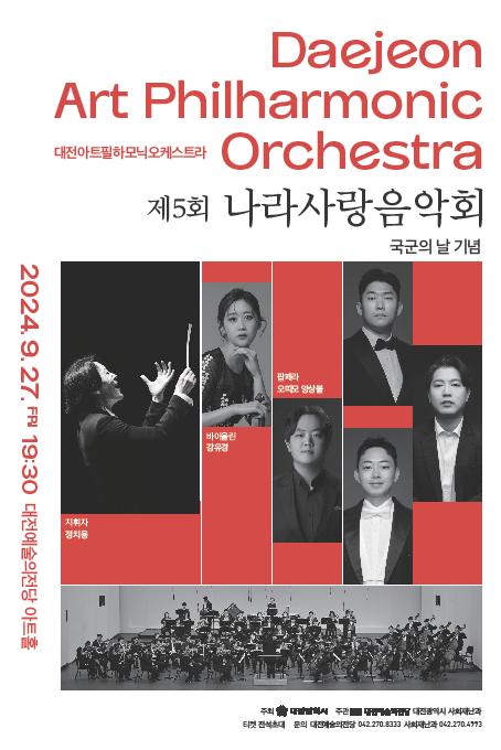 이번 연주를 맡은 대전아트필하모닉오케스트라는 2023년에 만 39세 이하의 지역 청년 음악가들로 구성된 대전의 젊은 교향악단으로 이미 다양한 공연을 지역에서 성공적으로 개최한 바 있으며 이번 음악회에서도 다채로운 레퍼토리로 관객들을 사로잡을 계획이다.