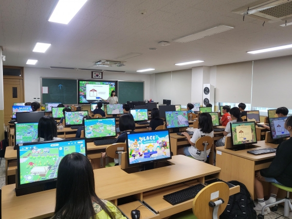 교육시간 동안 학생들은 도로명주소에 대한 동영상을 시청하고 기본적인 내용에 대한 설명을 들은 후 메타버스 플랫폼 안에서 자신의 캐릭터를 활용해 도로명주소를 부여하고 목적지를 설정해 찾아가 보는 시간을 가졌다.