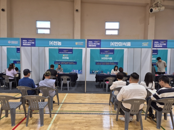 26일 논산시는 관내 13개 기업과 200여명의 구직자가 참여한 가운데 국민체육센터 실내체육관에서 ‘우수기업 채용설명회’를 개최했다.