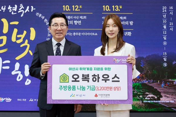 박경귀 시장은 “어려운 환경에 처한 취약계층을 위해 뜻깊은 나눔을 실천해 주신 ㈜오복하우스에 깊이 감사드리며 후원물품이 취약계층 삶의 질 향상에 크게 이바지할 것으로 기대된다”고 화답했다.