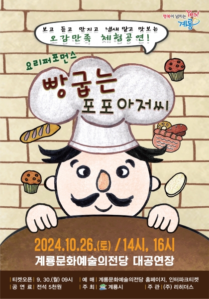 [Ytv영상스토리] 계룡시가 오는 10월 26일 오후 2시, 4시 계룡문화예술의전당 대공연장에서 아동극 ‘빵 굽는 포포아저씨’를 공연한다.