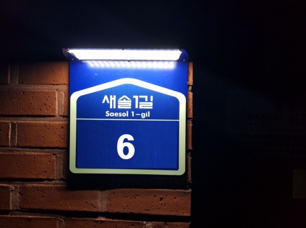 52개소에는 야간 상시 조명 기능을 갖춘 태양광 LED 건물번호판이 설치됐고 11개소에는 보행자 인식 시 조명이 켜지는 센서형 LED 건물번호판이 설치됐다.