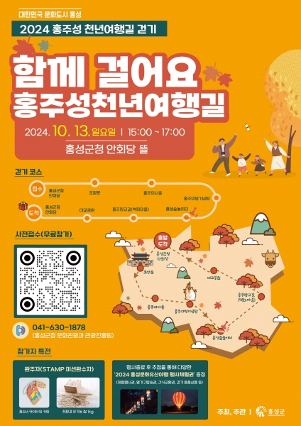 김태기 문화관광과장은 “이번 행사는 단순한 걷기대회가 아닌 홍성의 역사와 문화를 직접 체험하는 특별한 여행이 될 것”이라며“높고 청명한 가을 하늘 아래, 천년의 시간을 걸으며 아름다운 경관도 감상하시고 즐거운 추억을 만들어 가시길 바란다”고 전했다.