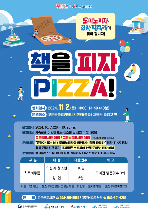 고운동도서관과 고운남측도서관은 도서관을 자주 이용하는 가족에게 혜택을 제공하기 위해 ‘책을 피자’ 행사를 기획했다.