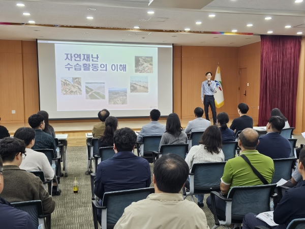 특히 재난현장 수습활동에 대한 교육 후 질의응답을 통해 실무자들이 평소 어렵게 느끼던 자연재난 기본지식과 현장경험 사례를 전달함으로써 향후 실제 재난 발생 시 업무수행에 큰 도움이 될 것으로 기대된다.
